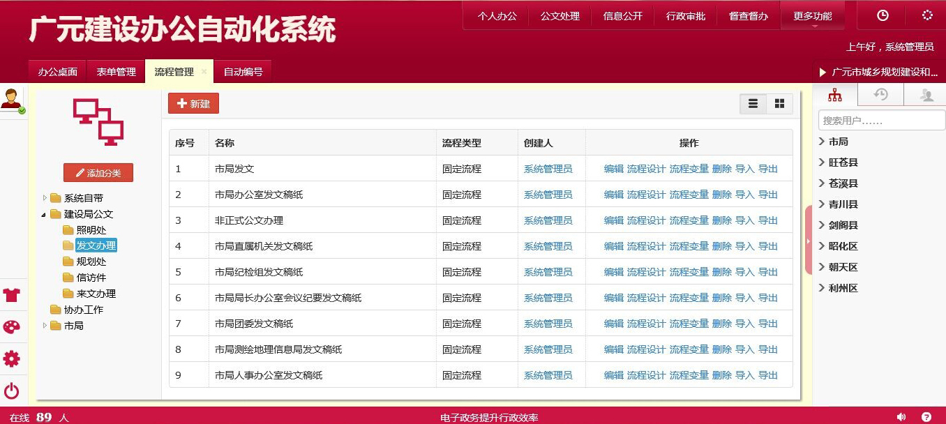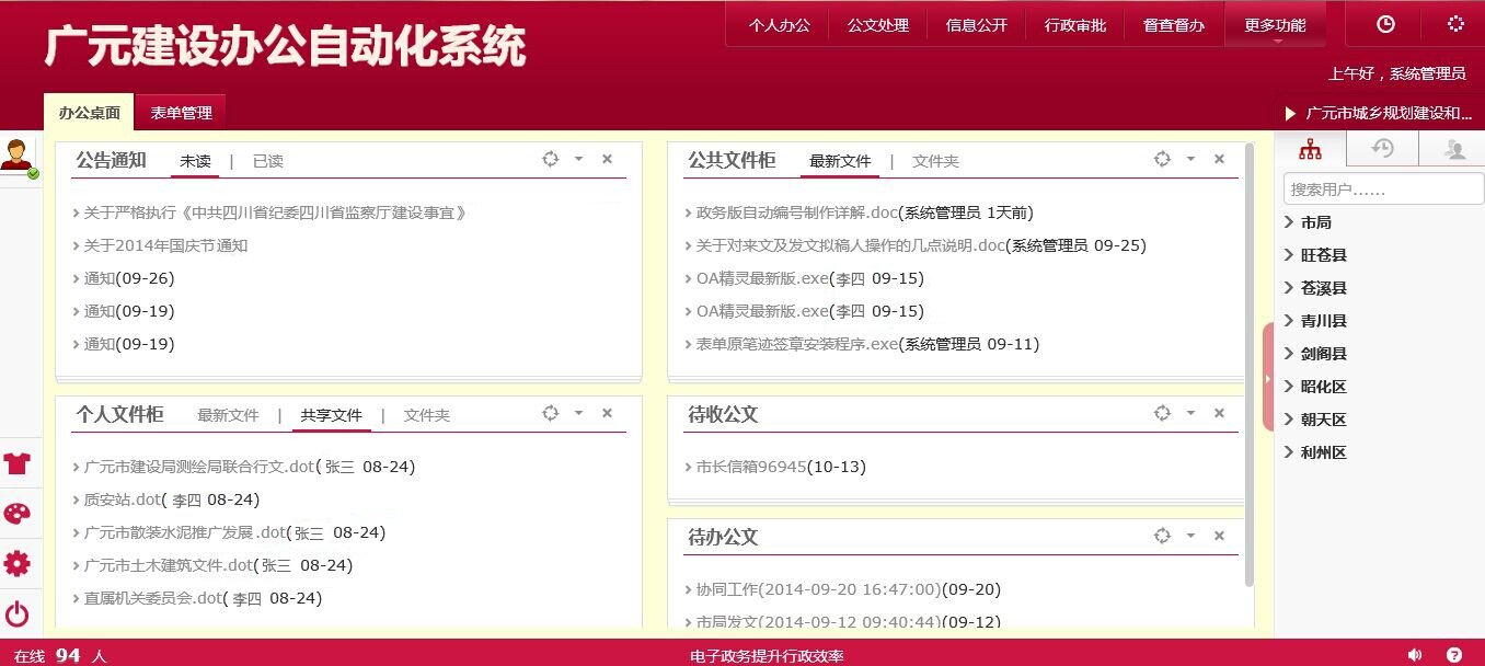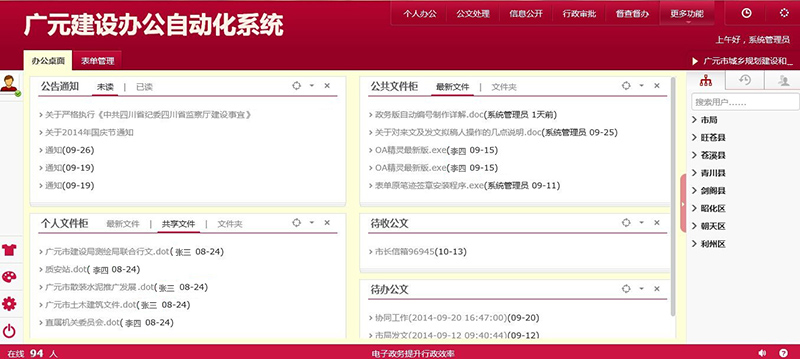 广元市城乡规划建设和住房保障局办公自动化系统门户界面