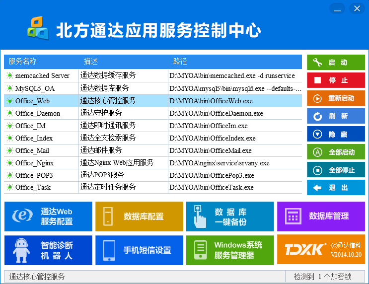 此外,通达研发团队基于自主知识产权,打造了全新的Office_Web通达Web核心管控服务,以保障Web引擎和进程管理器的正常运转。这样一来系统稳定性得到了极大的提升,人工维护成本也大幅降低。至此,以Office_Web通达核心管控服务为核心的Web服务系统,外加Office_IM通达即时通讯服务,以及Office_Mail通达邮件服务等服务项,均在Office_Daemon通达守护服务的安全守护下,形成了全新的通达后台服务中心。