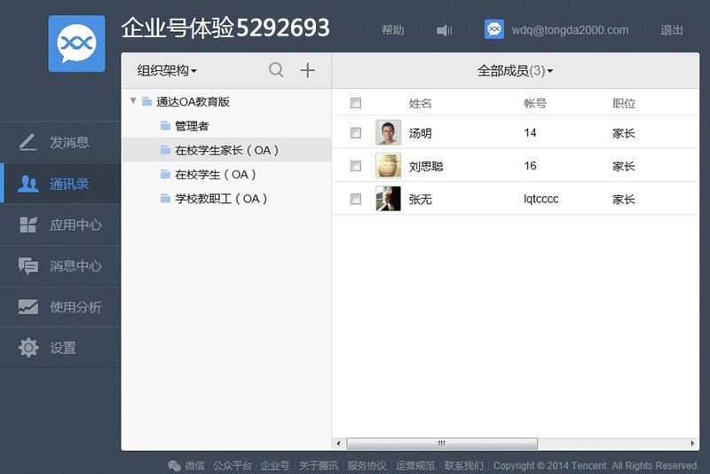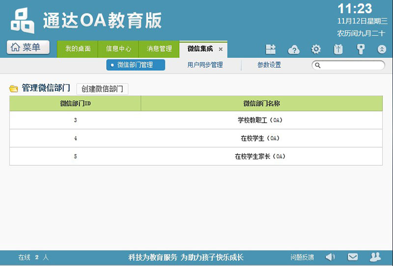 OA教育版中的家长名录自动同步到微信企业号的通讯录中